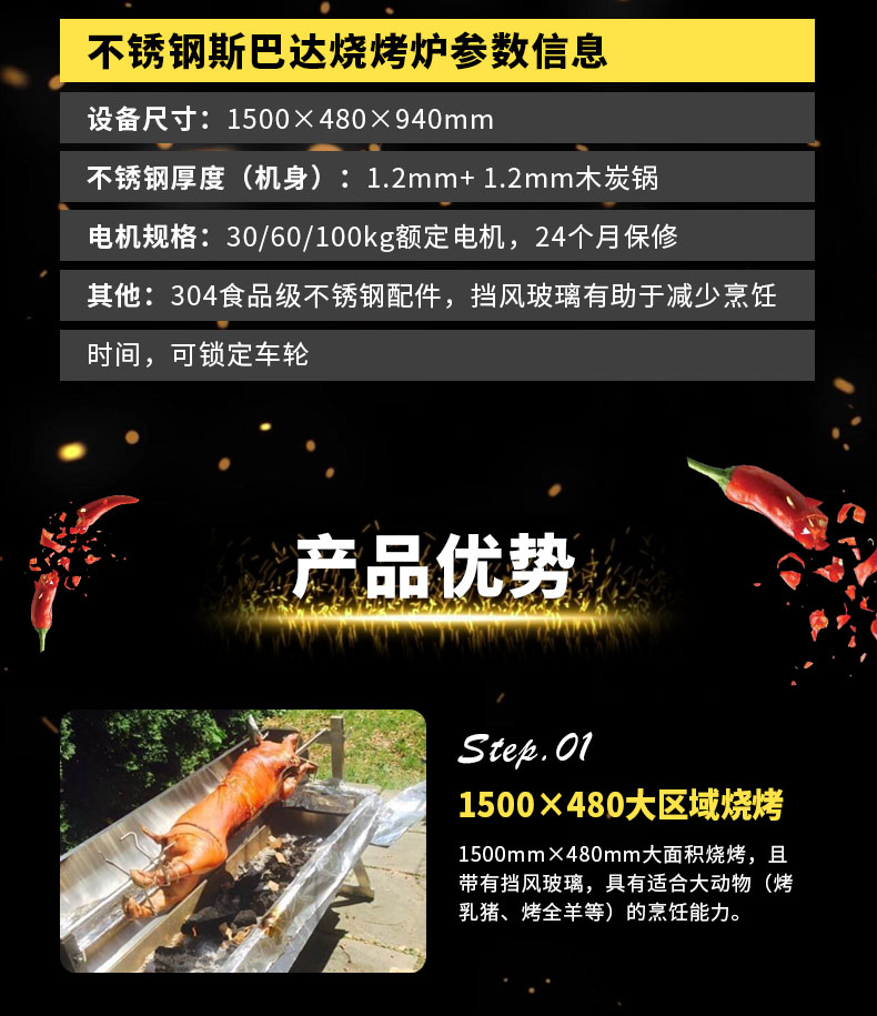 1.5米不銹鋼斯巴達(dá)燒烤爐