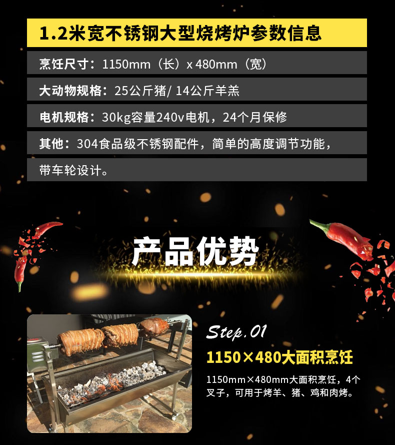 1.2米寬不銹鋼大型燒烤爐
